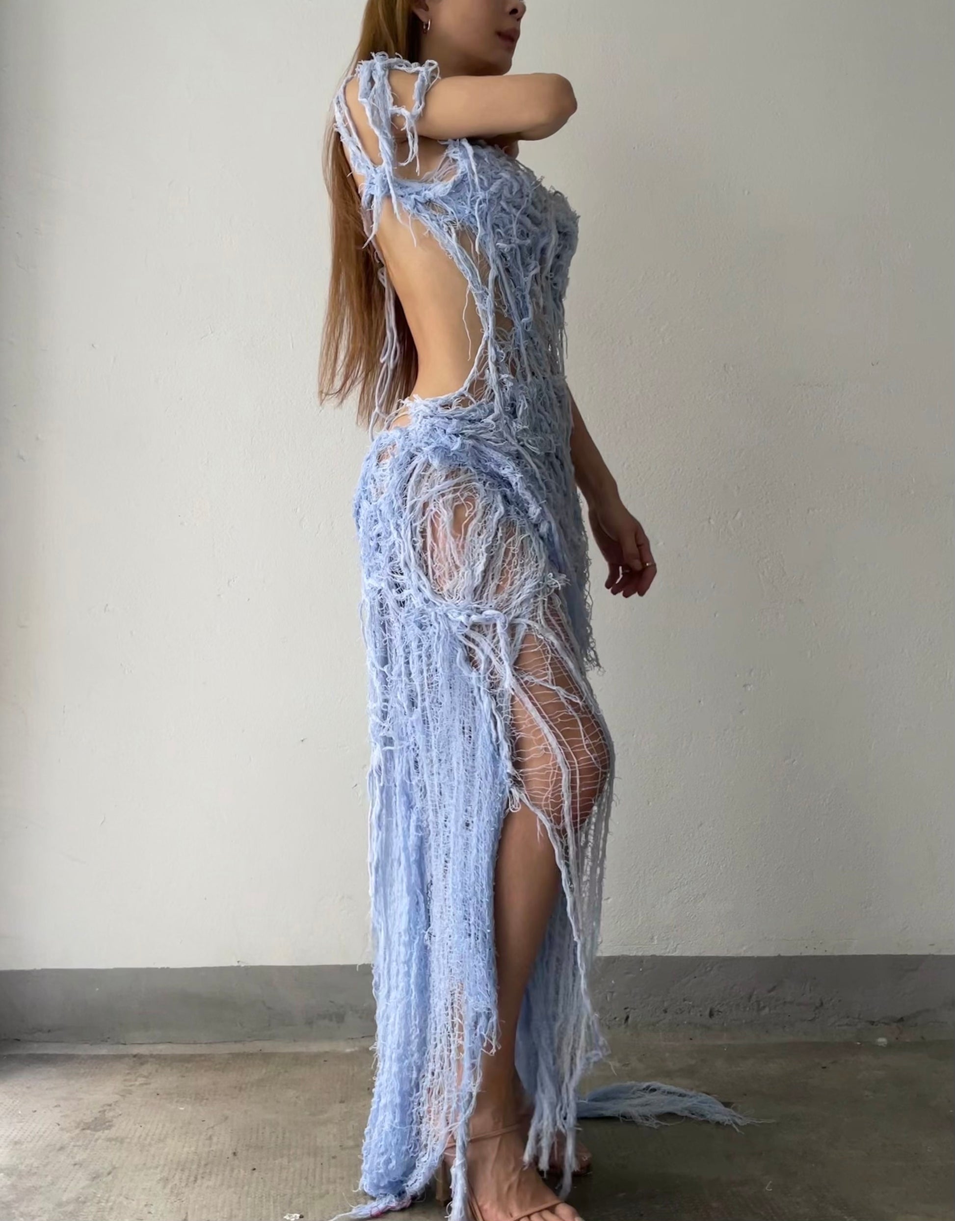 Material : Dress 100% Recycled cotton yarns, Veil 100% Silk and recycled cotton yarns.
